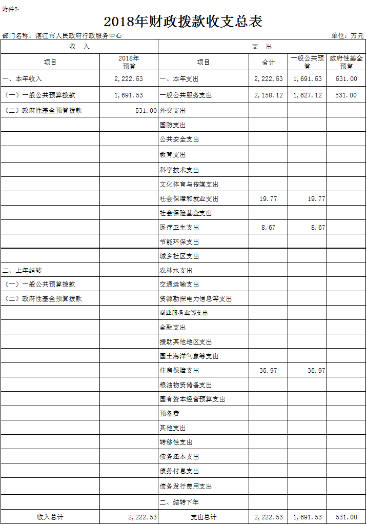 一、2018年财政拨款收支总表