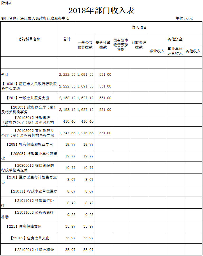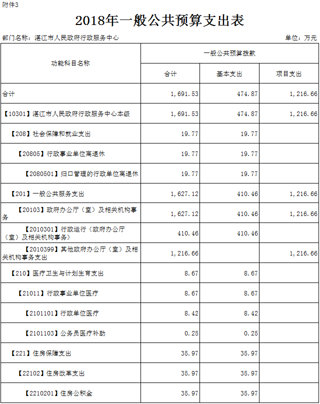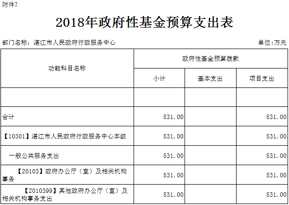 第二部分2018年91吃瓜 行政服务中心部门预算表