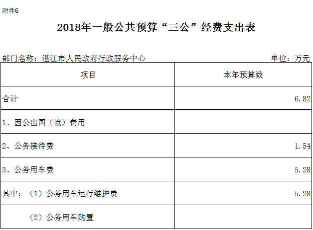 2018年“三公经费”财政拨款预算支出共6.82万元,具体情况如下: