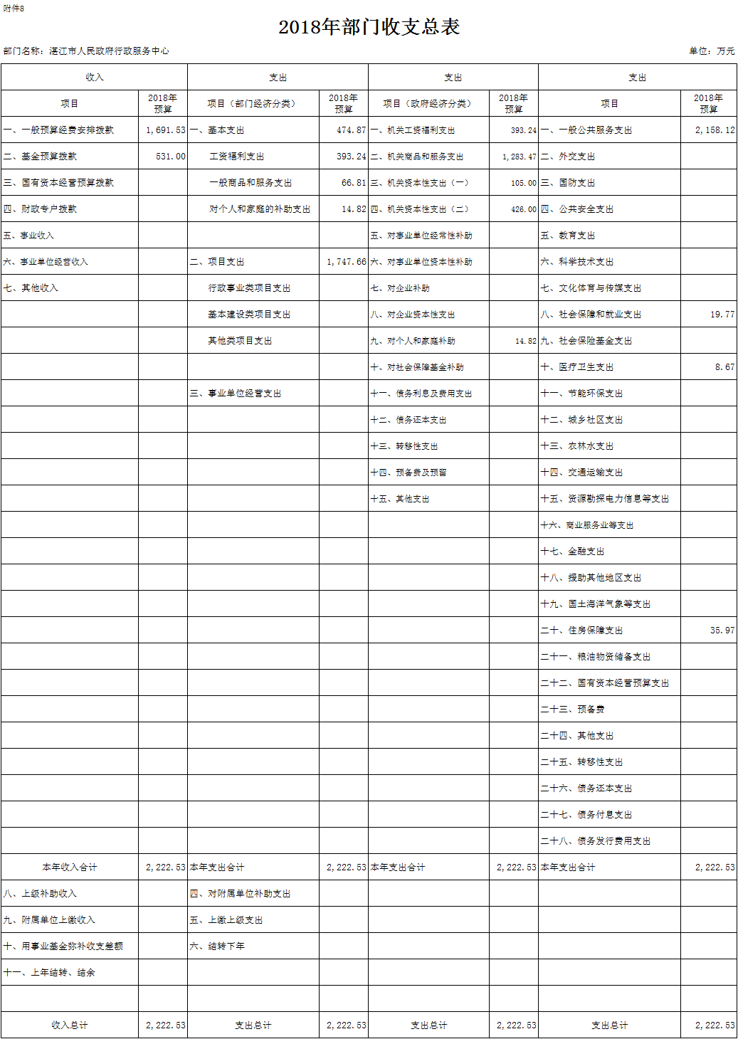 七、2018年部门收支总表