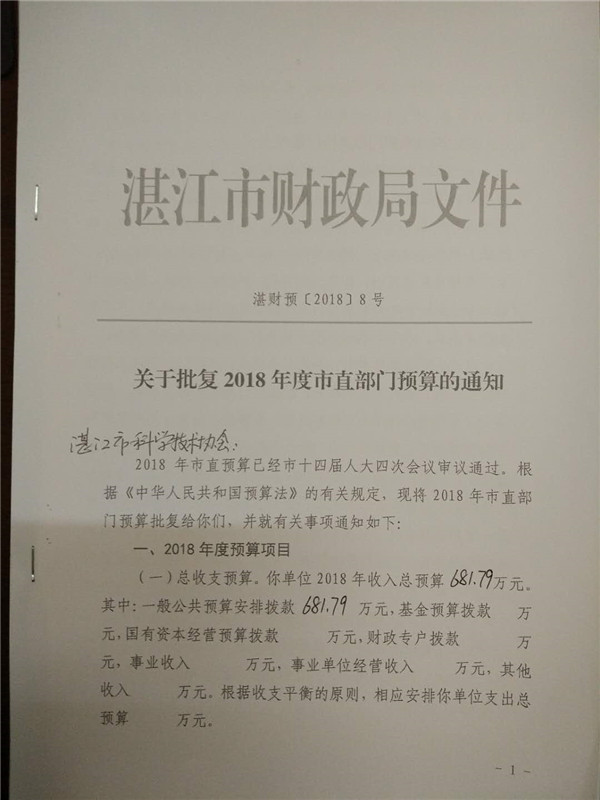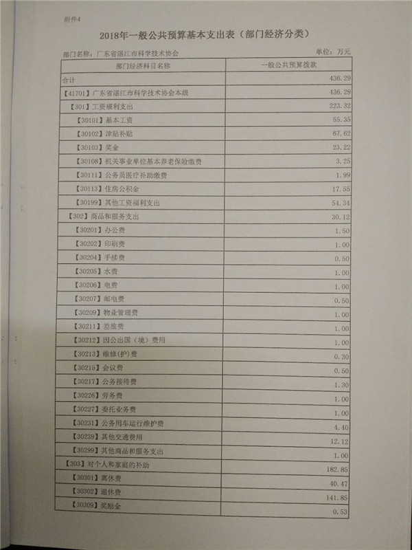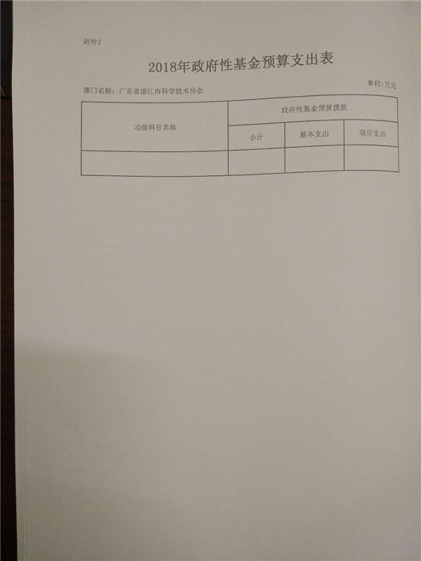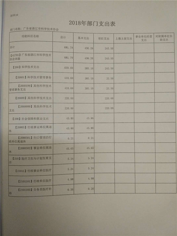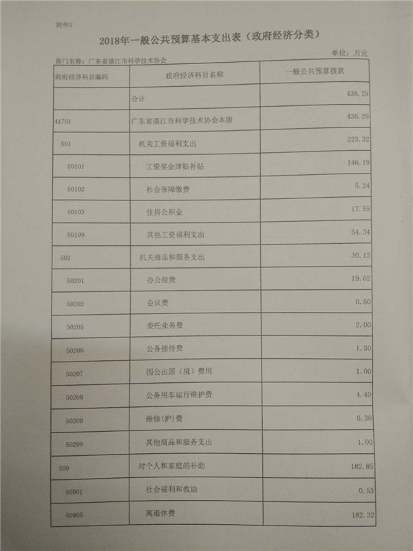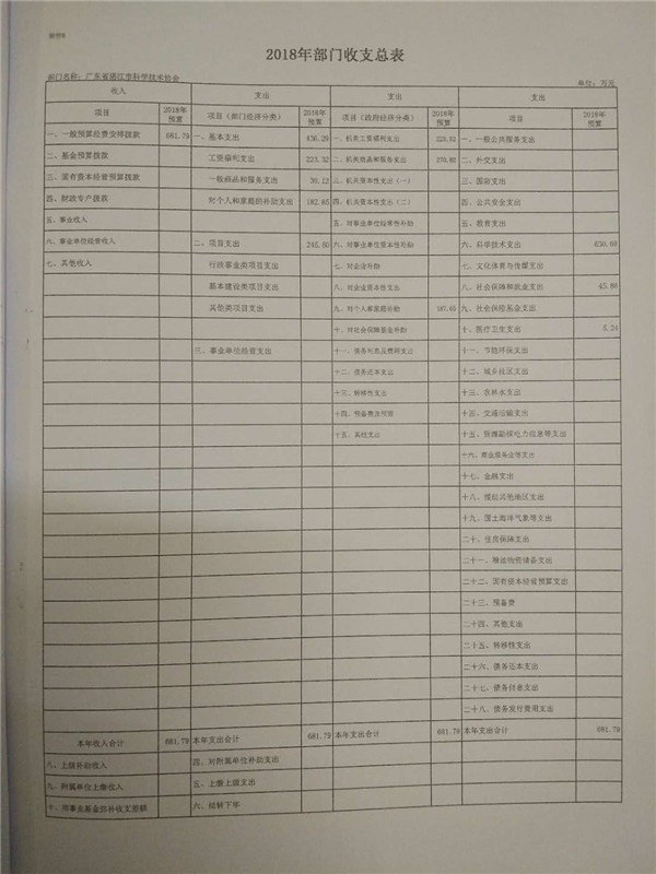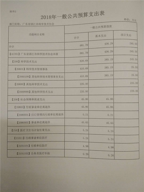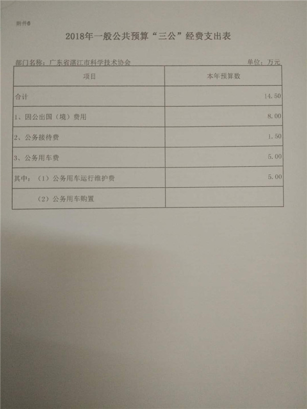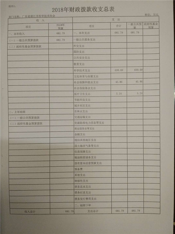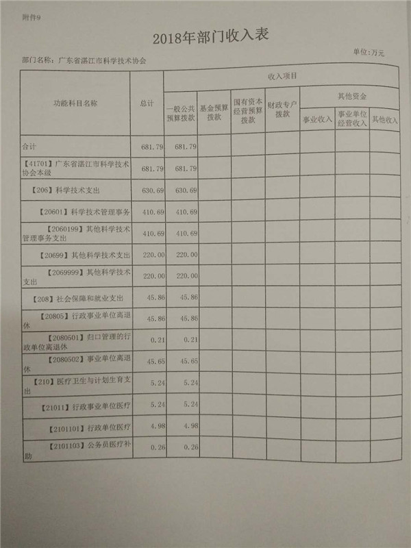 附件:2018年广东省湛江市科学技术协会部门预算