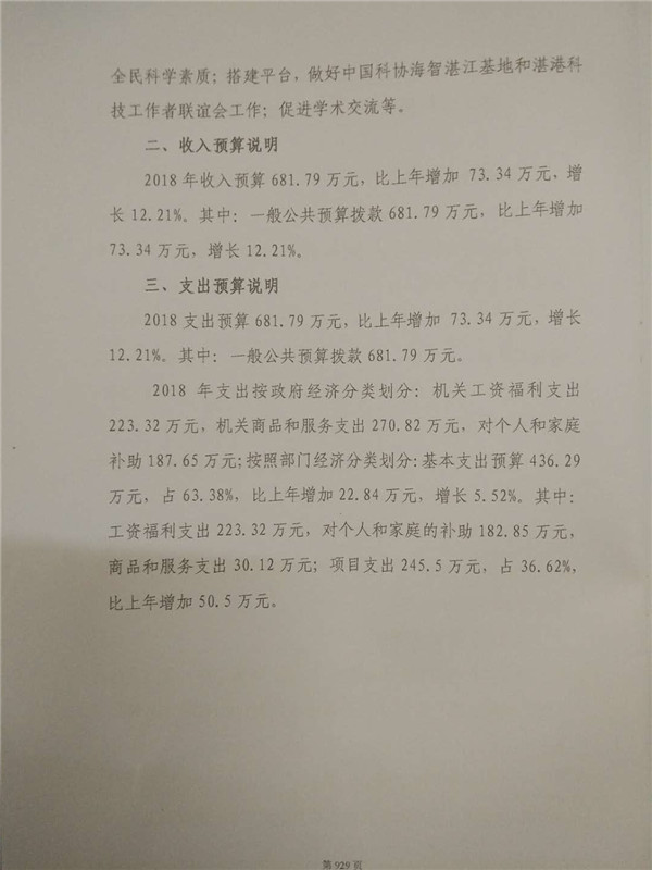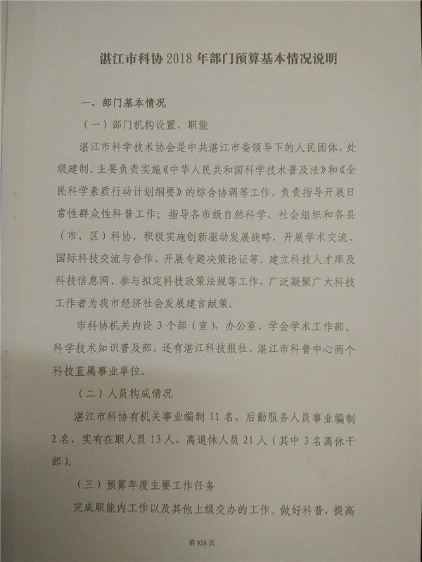 第一部分2018年湛江市科协部门预算基本情况说明