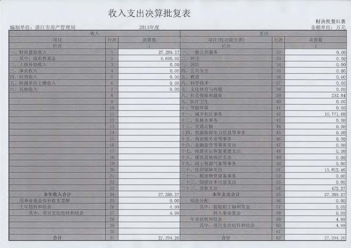 2013年收入支出批复表