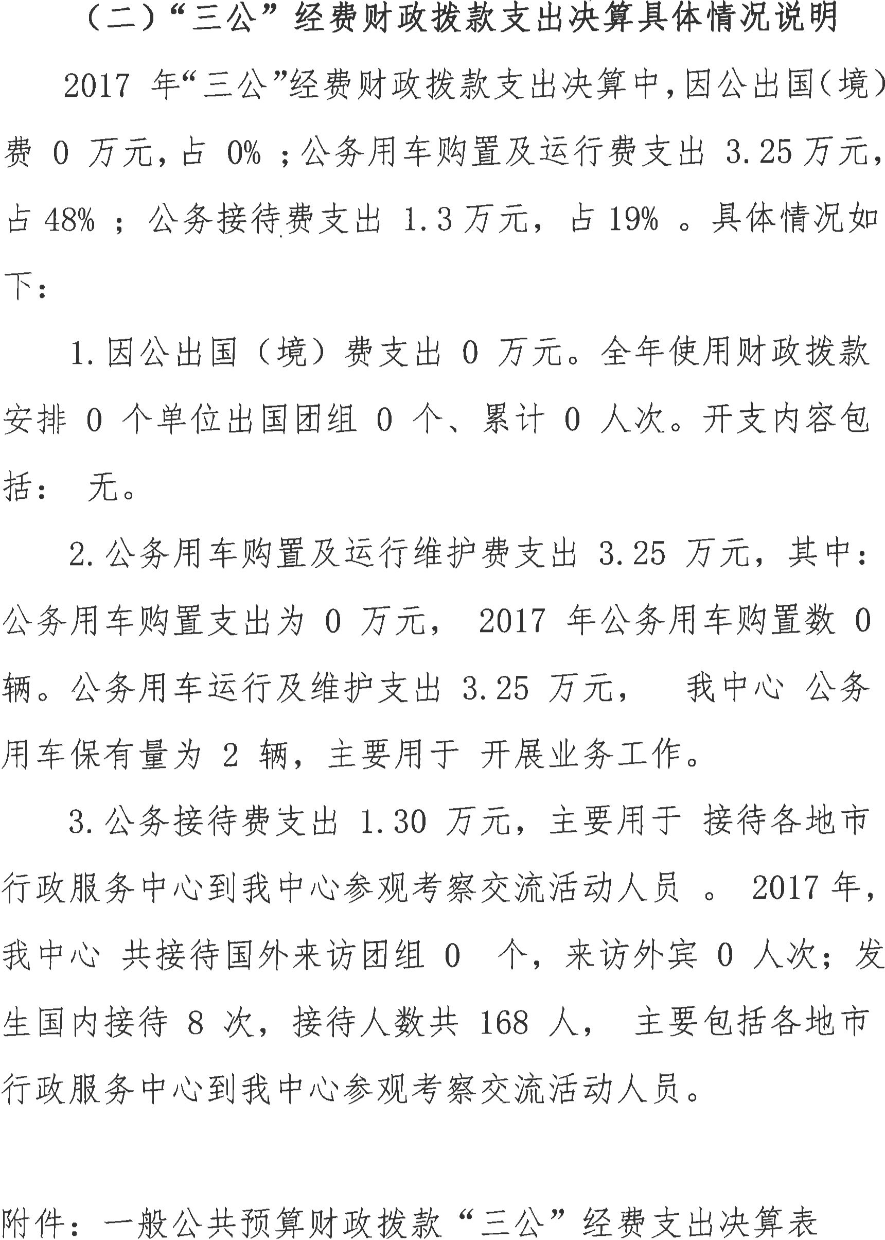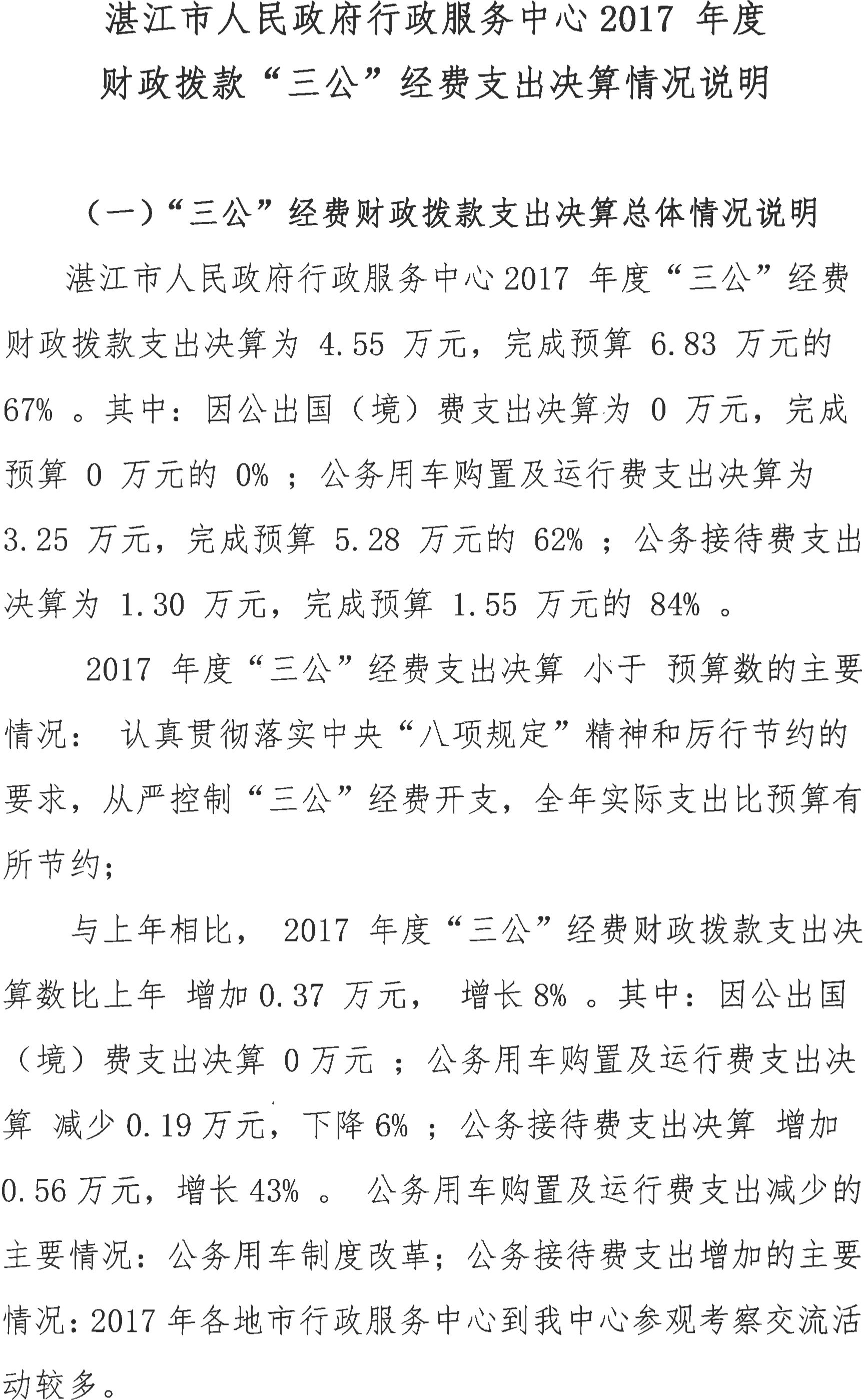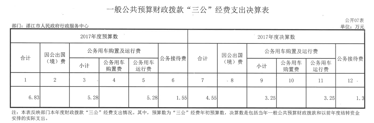 91吃瓜 行政服务中心2017年度财政拨款“三公”经费支出决算情况说明
