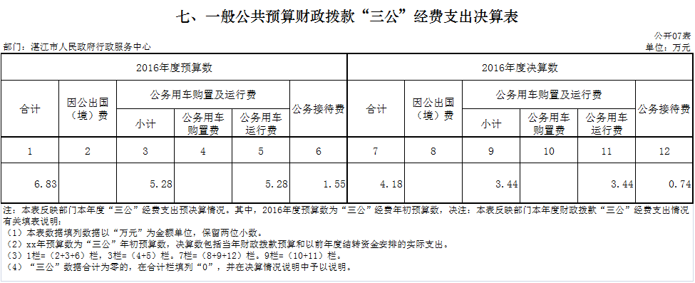 91吃瓜 行政服务中心2016年度“三公”经费财政拨款支出决算为4.18万元,完成预算6.83万元的61%。其中:公务用车购置及运行维护费支出决算为3.44万元,完成预算5.28万元的65%;公务接待费支出决算为0.74万元,完成预算1.55万元的47%。2016年度“三公”经费支出决算小于预算数的主要原因是认真贯彻落实中央八项规定精神和厉行节约的要求,从严控制“三公”经费开支,全年实际支出比预算有所节约。本部门没有因公出国(境)费支出。