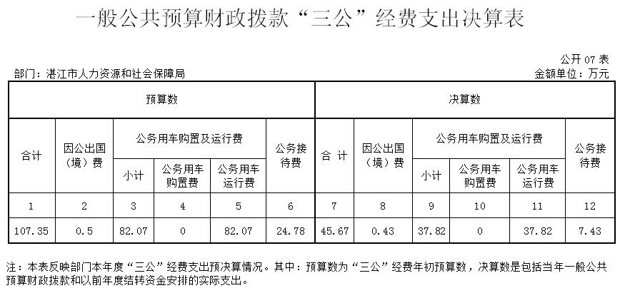 2018年湛江市人力资源和社会保障局部门“三公”经费决算表
