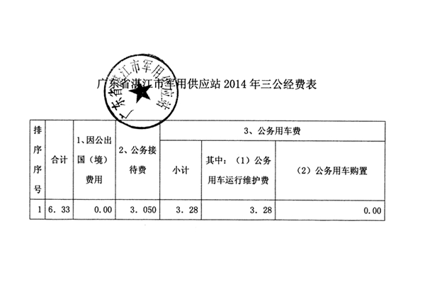 湛江市军用供应站2014年三公经费表