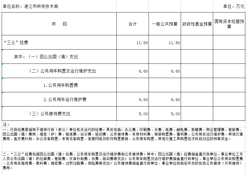 2022年湛江市科技局“三公”经费预算公开