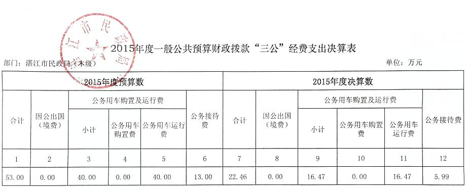 湛江市民政局2015年度一般公共预算财政拨款“三公”经费支出决算表
