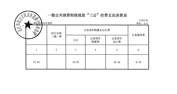 湛江市海滨军队离休退休干部休养所一般公共预算财政拨款“三公”经费支出决算表