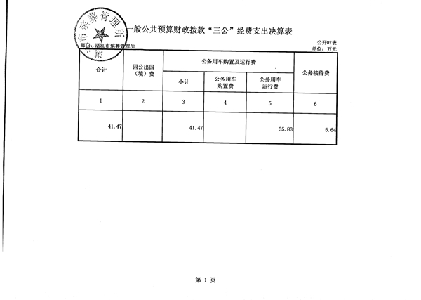 湛江市殡葬管理所一般公共预算财政拨款“三公”经费支出决算表