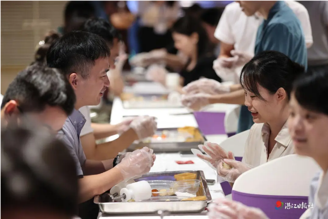 飞花令比赛中,“花、月、夜”等七夕主题字眼引发人才们的诗词共鸣,从“举头望明月”到“夜泊秦淮近酒家”,经典诗句轮番登场,在你来我往中感受诗词魅力。紧接着的湛江“四绿一蓝”知识大比拼,大家踊跃举手,在问答间快速掌握湛江生态文化知识,让“四绿一蓝”的城市特色深入人心。在“鲜美湛江”初体验环节,省级粤菜师傅工作室的老师现场教学广式月饼制作,在动手实践中感受湛江传统美食文化的魅力。