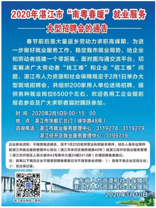 2020年湛江市“南粤春暖”就业服务大型招聘会的通告