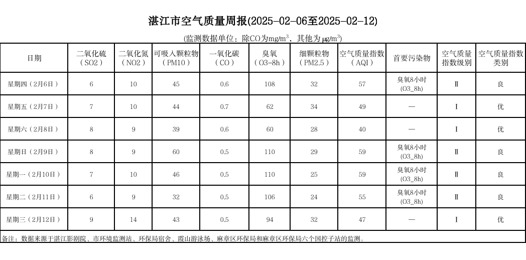 湛江市空气质量周报(2025-02-06至2025-02-12)