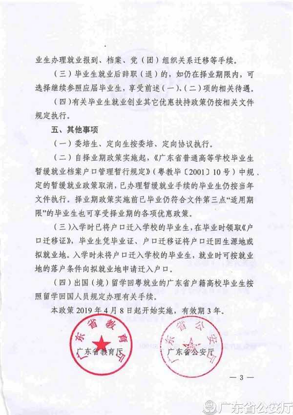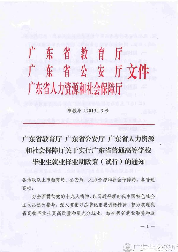 广东省教育厅 广东省公安厅 广东省人力资源和社会保障厅关于实行广东省普通高等学校毕业生就业择业期政策(试行)的通知