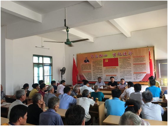 湛江市政府地方志办副主任、驻村党支部第一书记何祥华为全村党员上党课