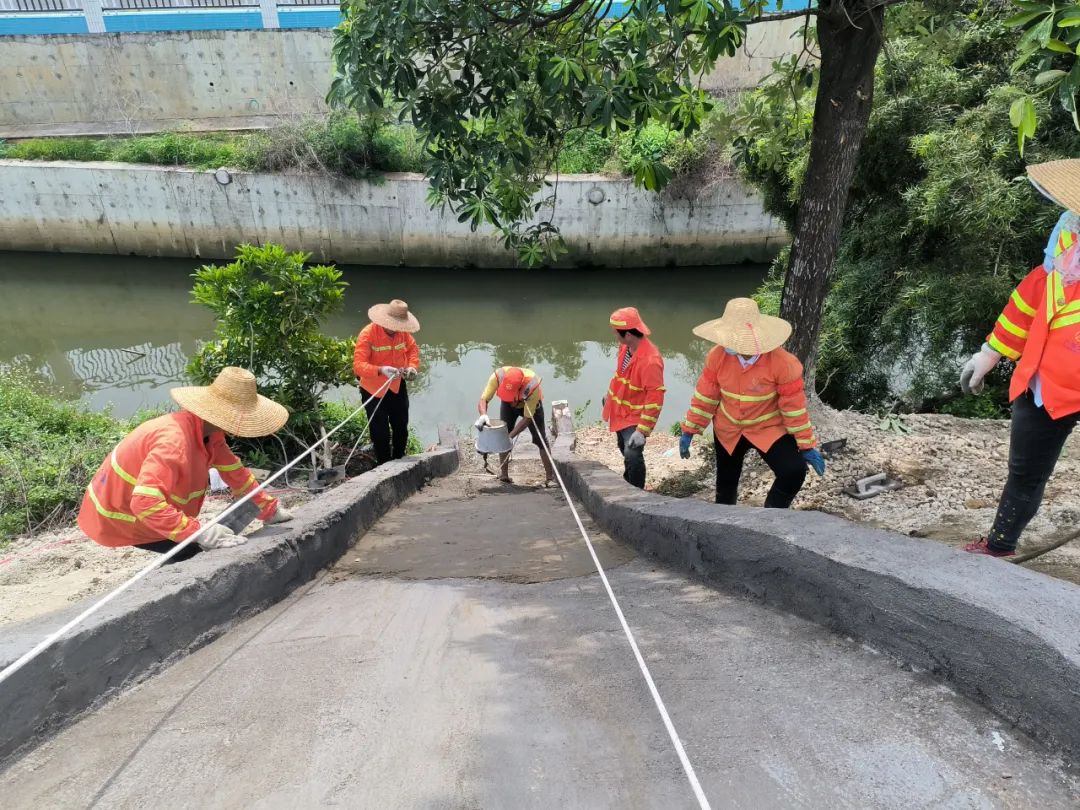 在修补水土流失滑坡的地方时,养护工人们展现了高超的专业技能。他们首先修建了坚固的挡水墙,有效阻止了水流对边坡的冲刷。随后,他们搬运了水泥、砂石、砖头等施工材料,利用混凝土搅拌后,将混凝土均匀地浇筑在滑坡区域。养护工人们特别注意了施工缝的处理,确保新老混凝土之间能够紧密结合,防止裂缝的产生。
