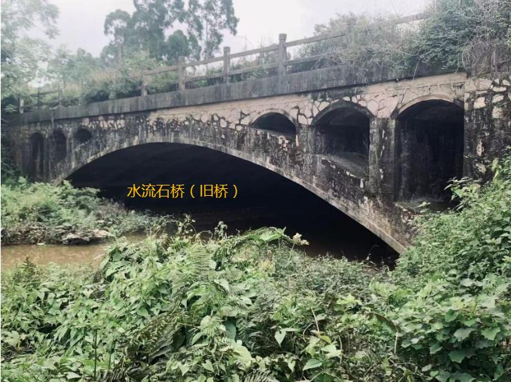 水流石桥位于湛江市坡头区龙头镇国道G228线上,桥梁全长30.5米,于1970年建成通车,是湛江车辆北上的交通要道。管养单位通过桥梁日常巡查、经常检查、定期检查等手段,发现随着交通量持续增长,该桥长期超负荷服役,桥梁已病害累累,存在一定的安全隐患,其中,左右桥幅相接处病害尤为严重,已危及往来车辆行驶安全。
