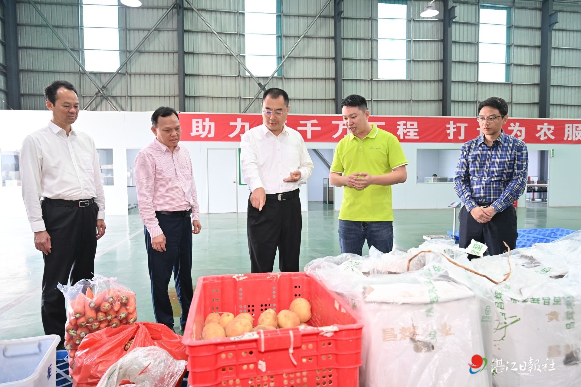 湛江供销农产品配送有限公司统一收集、统一检测、统一配送本地农产品,致力于提供省时、省力、省心的农产品直供服务。刘红兵来到公司分拣中心,仔细察看了分拣区、检测区、配送区、保鲜库等区域,听取公司生产经营情况介绍,勉励该公司加大市场开发力度,拓宽业务渠道,聚焦解决农产品质量安全和卖难买贵问题,提升农产品配送服务质量。