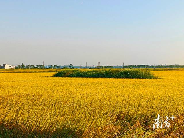 被誉为“广东粮仓”的雷州市东、西洋正处在稻谷收获的季节,在雷州市松竹镇王宅村,农民们迎来了令人喜悦的丰收。金黄稻田如同铺展在大地上的壮丽画卷,成熟的稻谷随风摇摆,金色浪潮随之在大地上翻腾。远处,收割机轰鸣着在稻田里往返,饱满的稻穗被带走,象征着从播种到收割的又一个循环落下了帷幕。