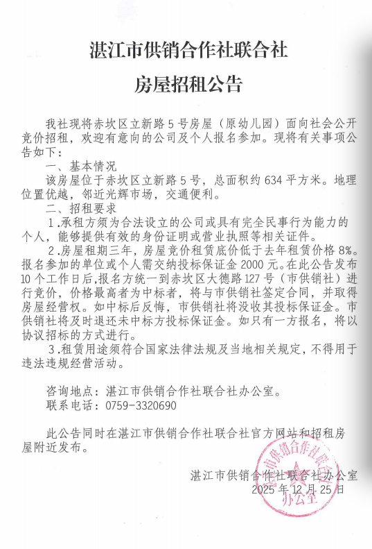 赤坎区立新路5号招租公告