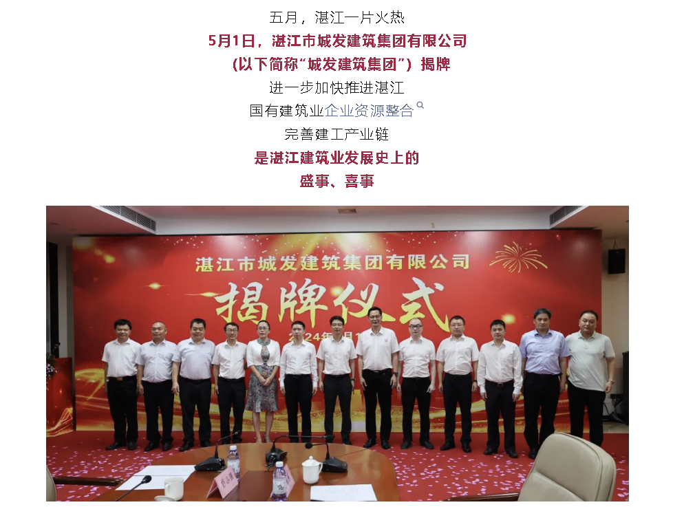 新龙头启航!湛江城发建筑集团揭牌