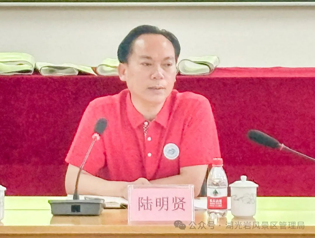 市湖光岩风景区管理局党组书记、局长陆明贤主持会议并讲话