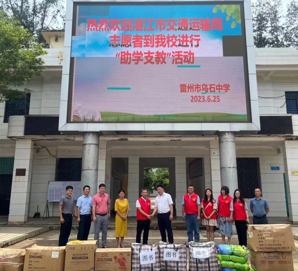 为大力推进新时代文明实践中心建设工作,6月25日,我局党组成员、副局长全勇同志率人事科相关人员前往雷州市乌石中学开展“助学支教”志愿者活动,此行受到了雷州市乌石中学师生热烈的欢迎。