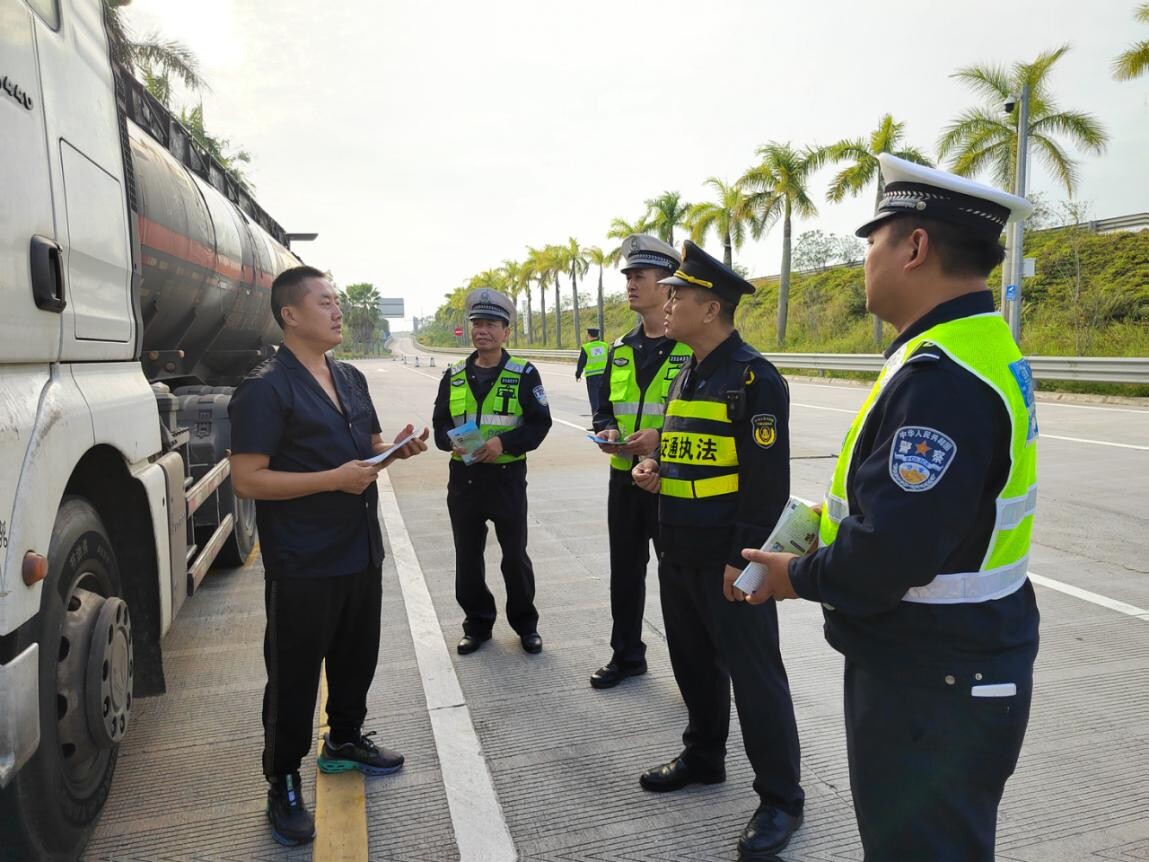 为深化“一路三方”联动机制,执法四科与高速交警大队、化廉高速路政大队携手,在高速公路服务区、收费站出入口联合开展以“文明交通,你我同行”为主题的“全国交通安全日”宣传活动。
