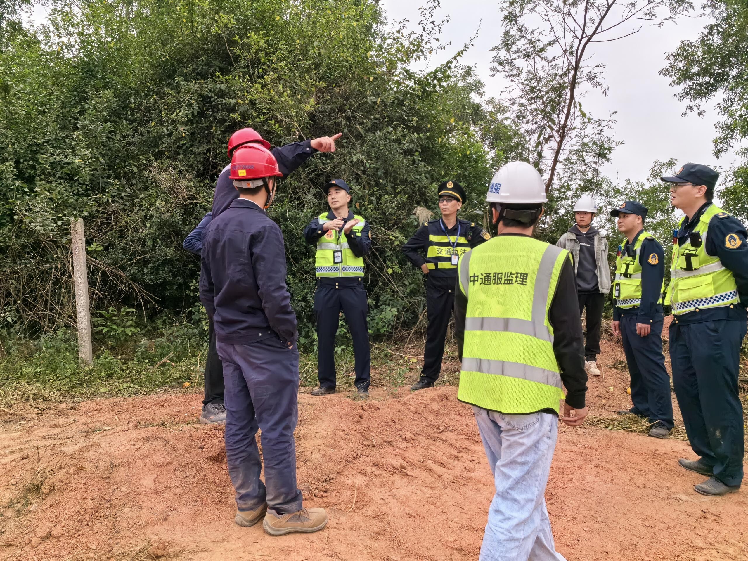 图为向施工现场工人宣传交通安全法律法规