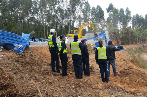 (执法人员拆除茂湛高速公路遂溪段公路控制区违建物现场)