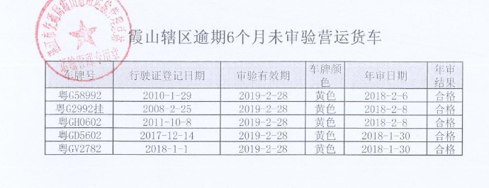 关于注销霞山辖区逾期6个月未审验的营运货车的公告(9月)