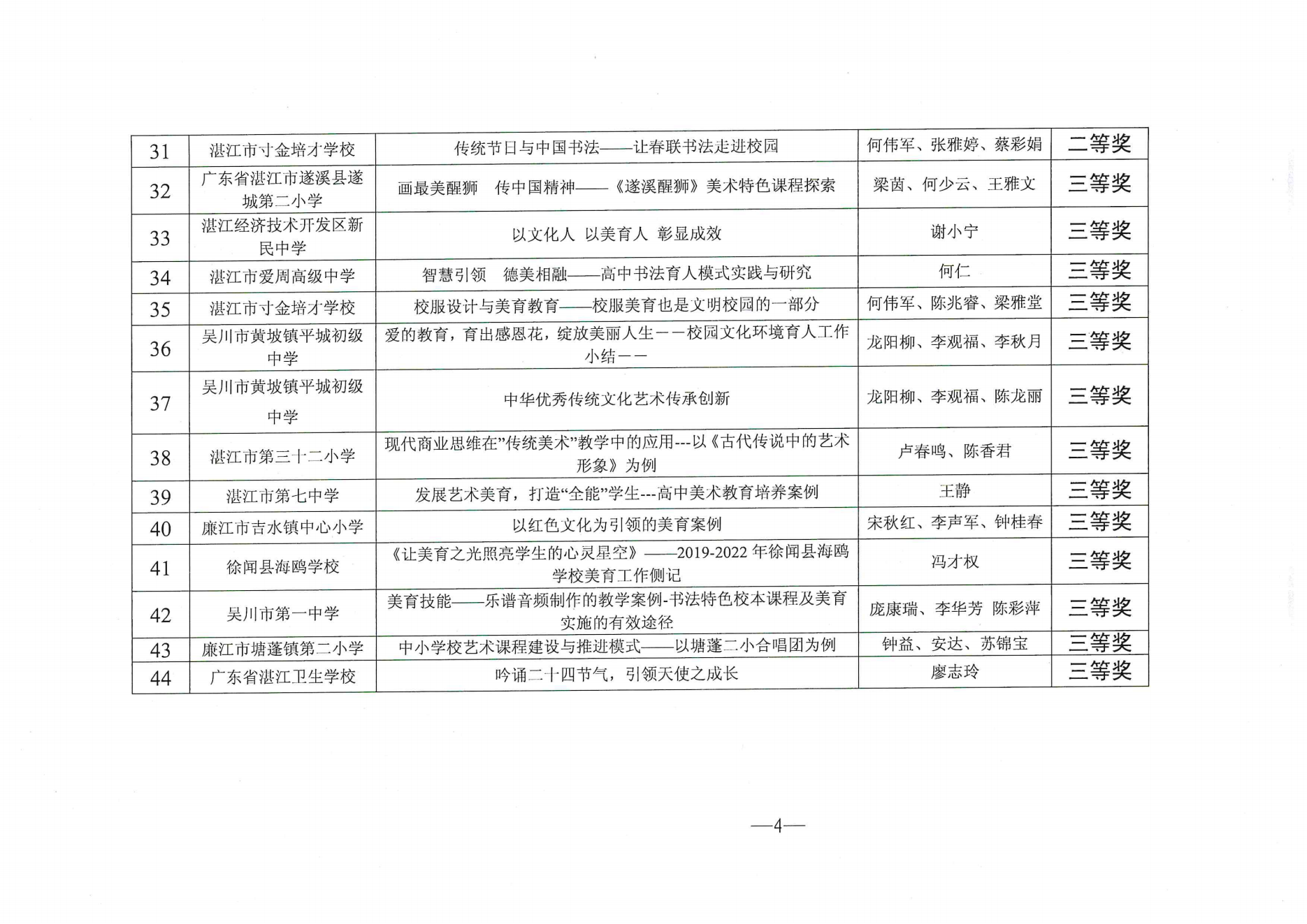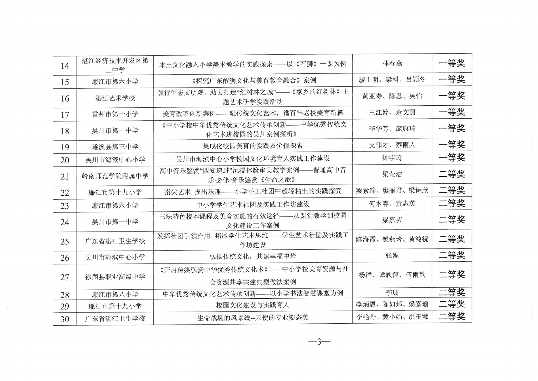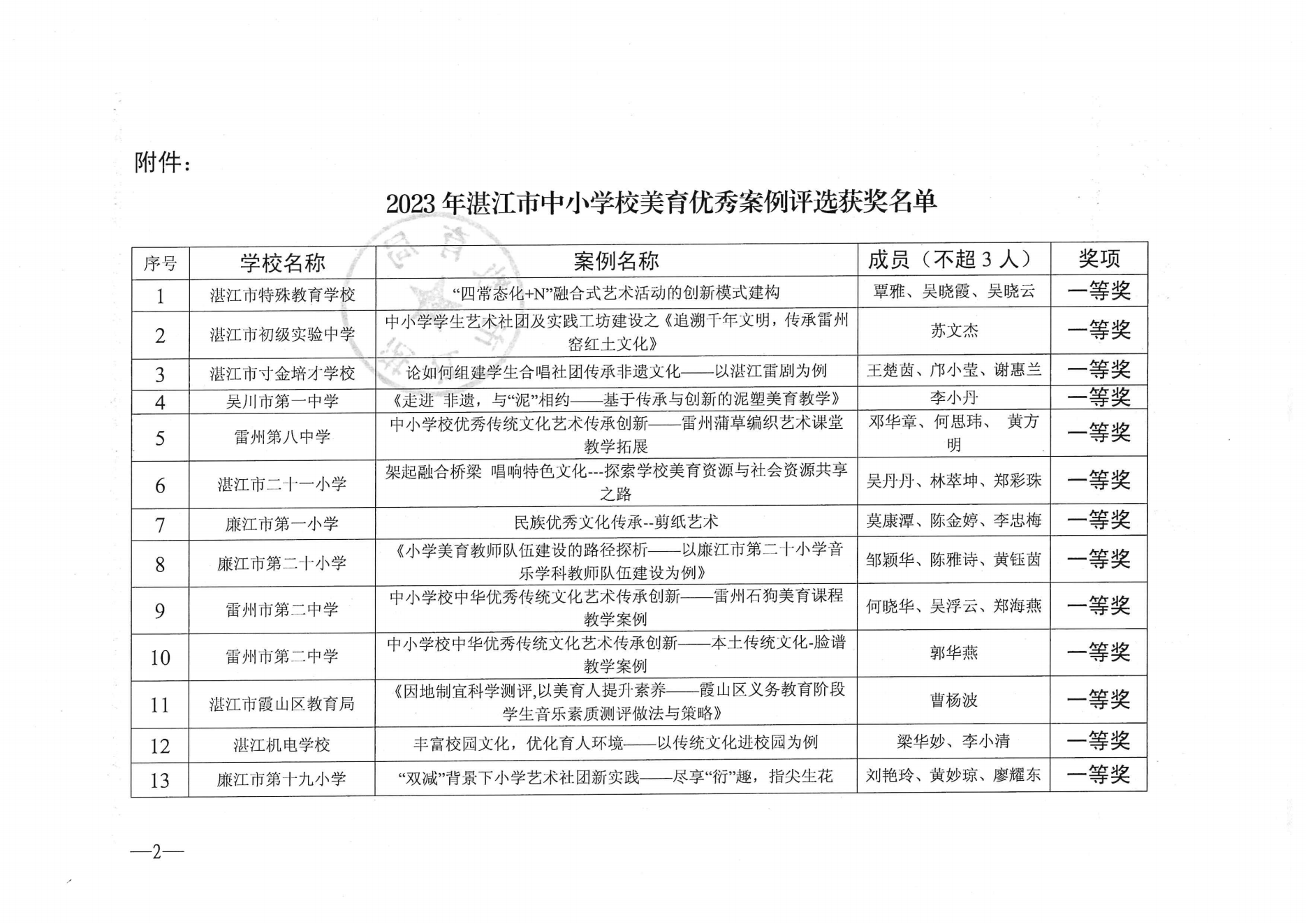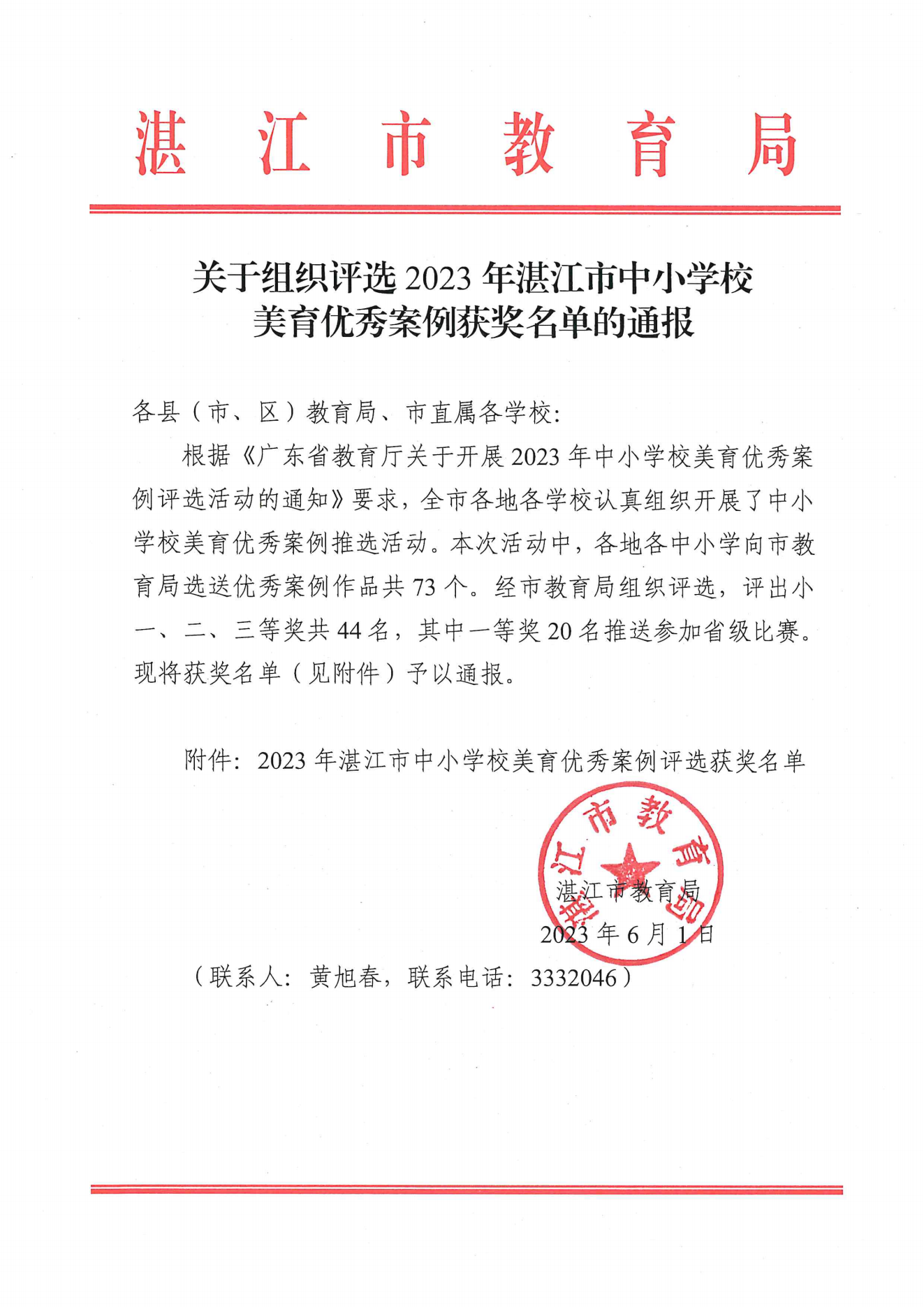 关于组织评选2023年湛江市中小学校美育优秀案例获奖名单的通报