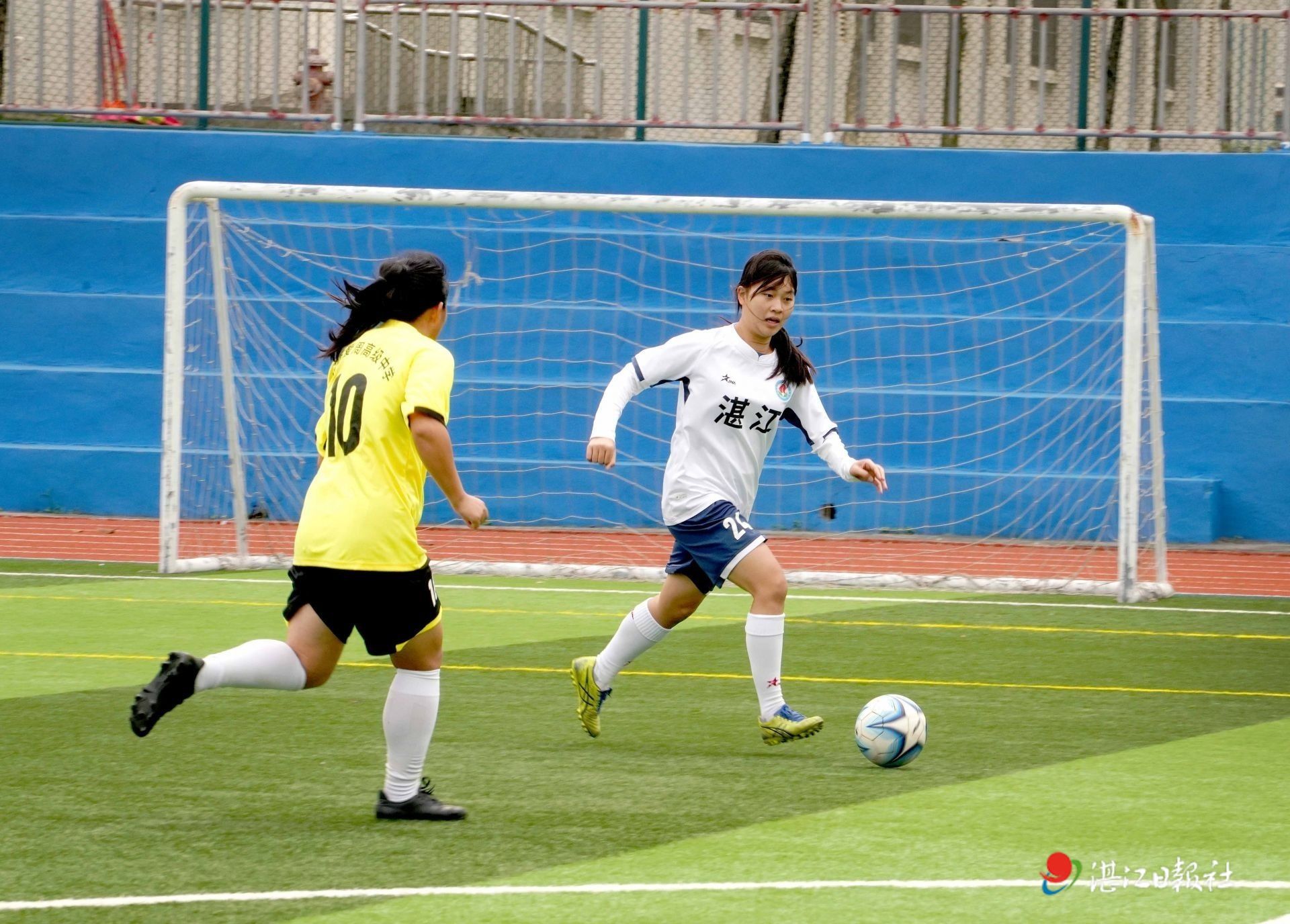 3月20日,爱周高级中学的足球场内,女子足球队正在进行训练。