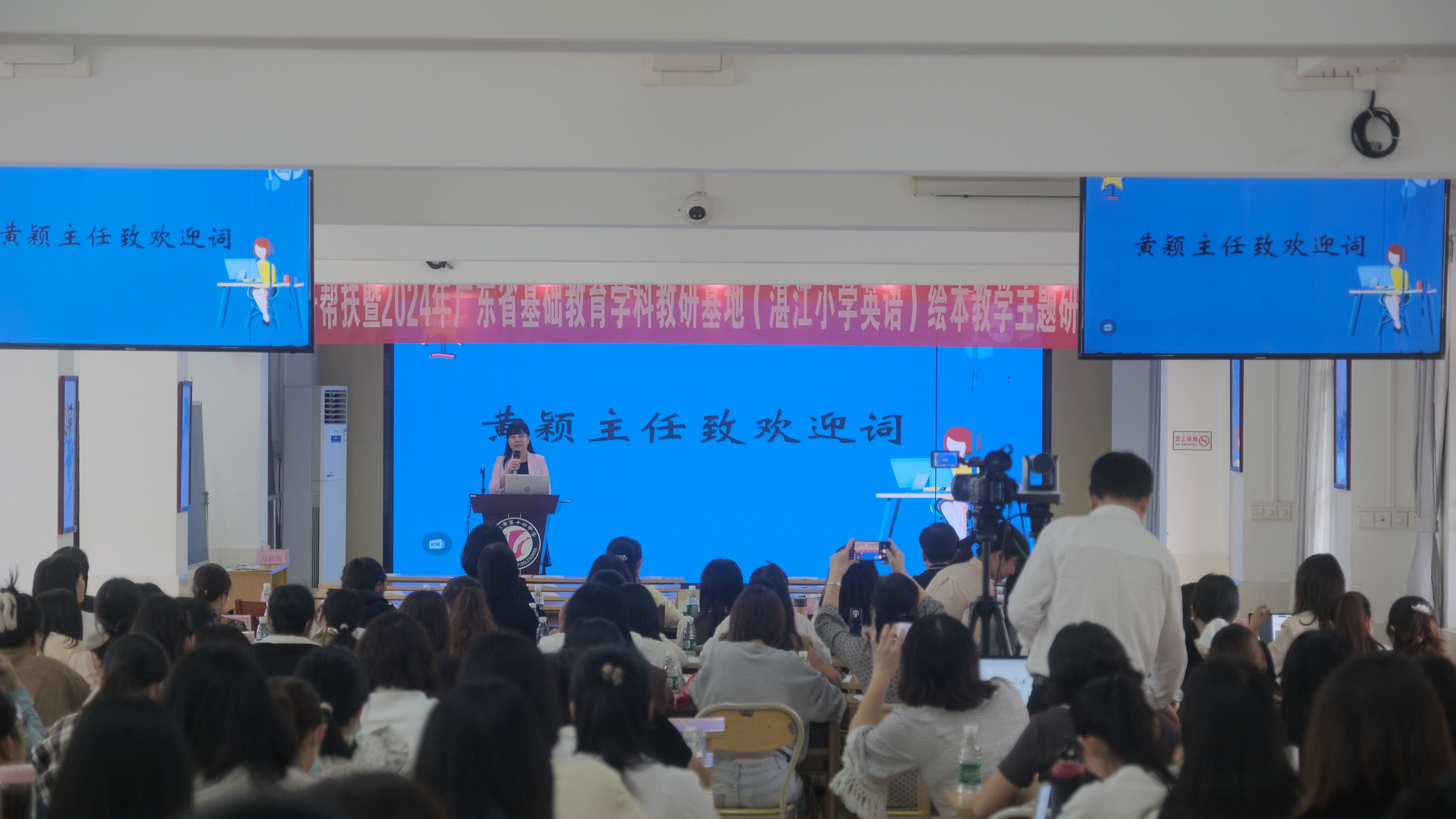行之力则知愈进,知之深则行愈达。为推动基础教育高质量发展,提升我市小学英语教师、教研员教学教研水平,促进广东省基础教育学科教研基地(湛江小学英语)建设,2024年广州市(番禺区)—湛江市(霞山区)教研帮扶暨广东省基础教育学科教研基地(湛江小学英语)绘本教学主题教研活动4月12日在湛江市第十四中学举行。本次活动通过线下+线上和名师课堂形式进行教学研讨,各县(市、区)教研员,广东省基础教育学科教研基地(湛江小学英语)基地成员,基地学校教师代表,霞山区小学英语教师代表,赤坎区、麻章区、坡头区、经开区教师代表,市直属小学教师代表共约200人线下参加,全市小学英语教师线上参加,当天线上参加人数累计约7000人次。4月12日8:30,在湛江市第十四中学冯颖薇老师的主持下,一场融合教与学、习与研、探与询的知识盛宴拉开序幕。