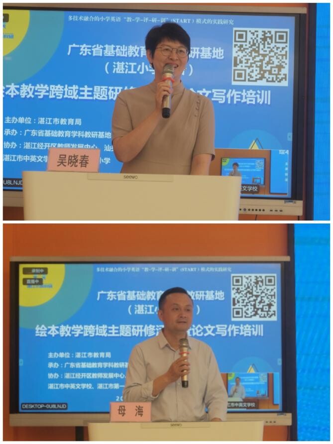 下午,广东教育杂志社魏文琦编辑进行了论文写作专题讲座,湛江市中英文学校易平芝校长做了绘本教学校本研究经验介绍分享。蔡艳莲、许乐冰两位教研员基于本地区的教研教学,分别进行新课标、新教材和新教法的交流分享。与会教师纷纷表示,此次活动不仅拓宽了教学视野,也为他们提供了宝贵的教学方法和写作思路。