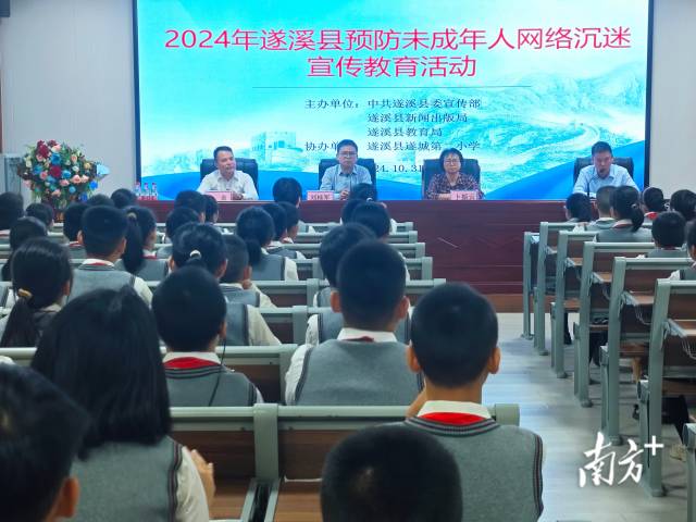 为有效预防网络沉迷,培养和提高未成年人的网络素养,保护未成年人身心健康,10月31日,中共遂溪县委宣传部、遂溪县新闻出版局、遂溪县教育局联合在遂城第二小学、遂城第三小学两所学校,开展2024年预防未成年人网络沉迷宣传教育活动。两所学校共计300余名师生参与活动。