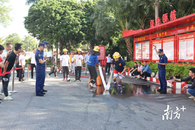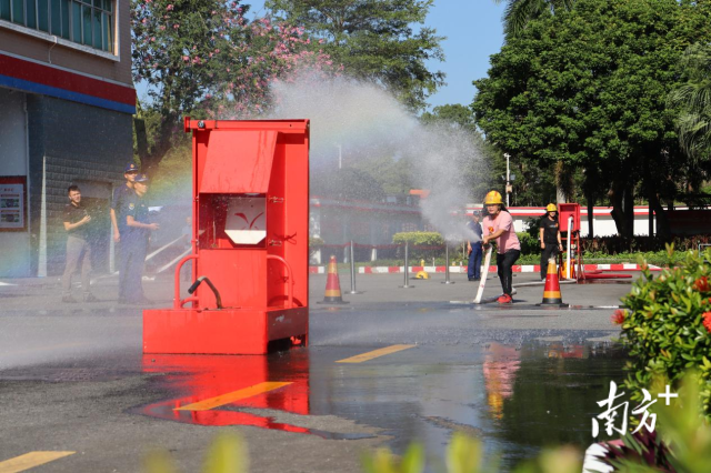 竞赛分笔试和实操两部分:笔试侧重考察消防知识储备和识图辨隐患能力;实操则设置室内消火栓出水操和干粉灭火器操科目,侧重考察突发火情的应急应变能力。