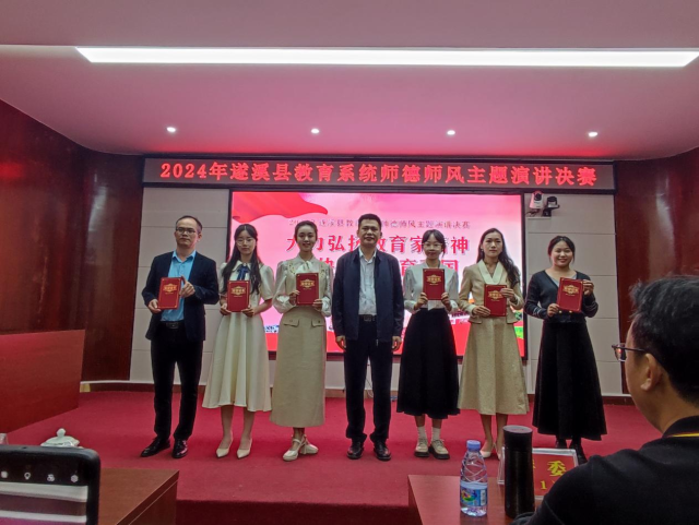 近日,遂溪县教育局举办了以“大力弘扬教育家精神,加快建设教育强国”为主题的师德师风演讲决赛。