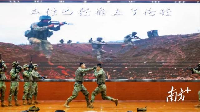 整齐踏步,匍匐前进,有力格挡……舞蹈节目《出征》以精彩的格斗技巧表演充分展示了军人卓越的身手和风采。