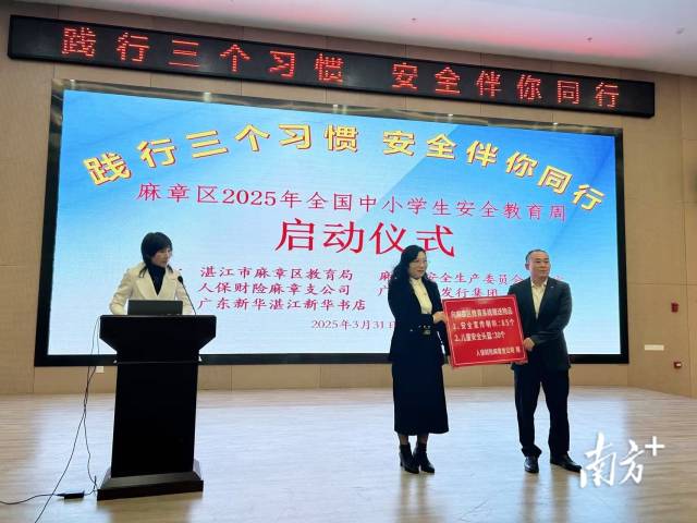 活动仪式上,麻章四小学生代表分享了“养成好习惯 安全伴成长”小故事,学校代表分享了加强校园安全教育培养学生三个好习惯的经验做法。人保财险麻章支公司潘凰慧经理和广东新华发行集团粤西区域管理中心总经理兼湛江新华书店总经理陈锡星分别发言并代表公司向区教育系统赠送校园安全宣传教育用品一批和图书2000册。