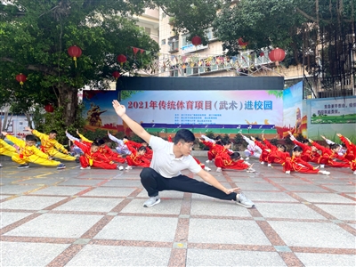本报讯 记者卓朝兴 通讯员程守午报道:10月12日,记者从湛江市文化广电旅游体育局了解到,2021年,该局按照市委、市政府创建全国文明城市工作总体部署,根据《关于实施中华优秀传统文化传承发展工程的意见》精神,湛江市文广旅体局、市教育局联合发文《关于持续开展传统体育项目进校园活动的通知》,对活动进行全面部署,要求全市各中小学校更加广泛地开展传统体育项目进校园活动,在学生中传承和弘扬中华优秀传统体育文化,进一步推进未成年人思想道德建设。各中小学校积极响应,纷纷结合自身实际,在学校中开展传统体育项目知识普及和训练活动,传承中华优秀传统体育文化蔚然成风。