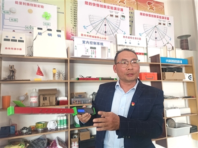 “那是2016年,当时雷州市教育局日益重视信息技术教育,分配一个培训名额给我们学校,学校领导安排我去参加这次培训,得到了宝贵的机会——到广州参加广东省中小学教师信息技术应用能力提升工程省级骨干教师培训,之后我就再续前缘走上科创教育之路。”陈炎基说,其有个特点——喜欢钻研,喜欢动手实践,不会请教别人,如果别人也不会,就自己学。他把创客工作室当成自己的家,不论是否节假日,经常泡在里面学习、研究、创作,常常会为了作品的一个小零件而赶到湛江购买,或者为了解决技术上的问题而到湛江请教别人。虽然搞科创比较辛苦,但他却乐此不疲。