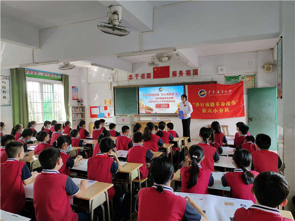在广东海大党委和湛江市委教育工委的组织协调下,宣讲师生分别走进麻章一中、麻章中心小学、麻章二小、麻章三小、赤岭小学、湛江博雅学校、麻章实验学校等7所中小学,为广大中小学师生宣讲南路革命先辈事迹,以生动感人的故事激励和引导广大青少年学生听党话、感党恩、跟党走,凝聚新时代青少年感恩奋进的磅礴力量。