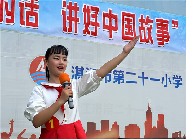 6月27日,湛江市第二十一小学举办了“从小听党的话 讲好中国故事”讲故事比赛(如图,记者 林石湛 摄)。 评委老师对同学们的表现给予了充分肯定。该校有关负责人勉励青少年们要坚定理想信念,知党史、听党话、感党恩、跟党走,争做中国故事的讲述者、红色精神的传承者、红色文化的传播者。(湛江日报 记者陈荔雅 通讯员关菁蕾)