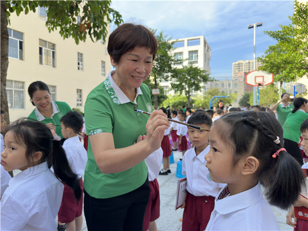 问答互动踏上小学列车“卓越号”、少先队员现场展风采、老师为新生启智点朱砂……入学活动丰富多彩,欢声笑语在校园里不断响起。(湛江日报 记者潘洁婷 通讯员周园月)