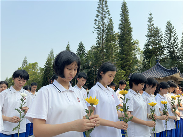 4月3日,湛江一中组织入团积极分子、团干等前往湛江市烈士陵园开展“清明祭英烈”活动(如图,记者林石湛 摄)。
