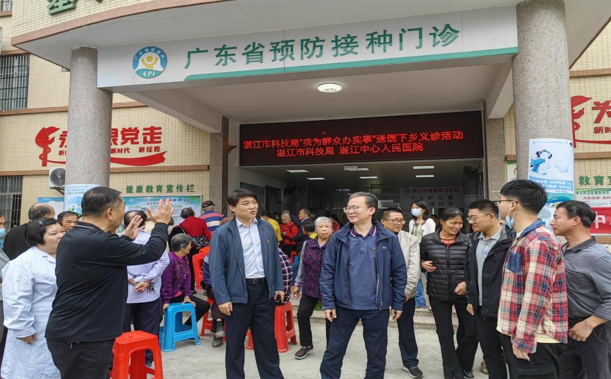 当天一大早,塘蓬镇卫生院便人山人海,村民群众早早就来到这里排队等候。市科技局联合湛江中心人民医院在这里举办“我为群众办实事”送医下乡义诊活动,医院心脏大血管外科、心血管检查诊断科和药学部的专家团队免费给群众看病、检查、送药,进行耐心讲解和健康科普。赵刚一行看望义诊团队,与卫生院负责人交流,了解卫生院现状和群众就医需求等。