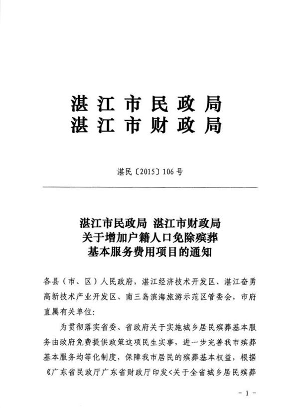 关于增加户籍人口免除殡葬基本服务费用项目的通知