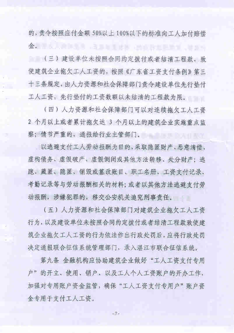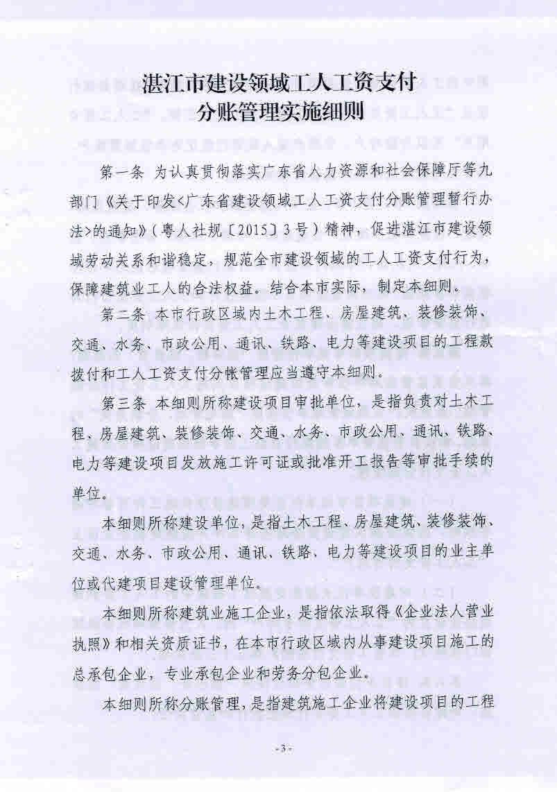关于印发《湛江市建设领域工人工资支付分账管理实施细则》的通知